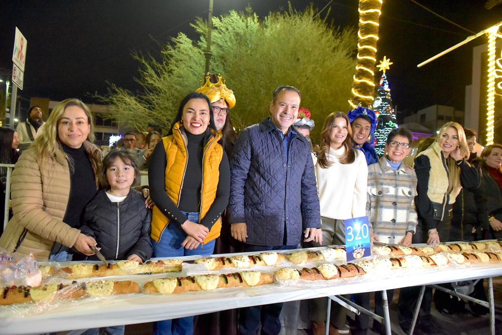 Además de los tres Reyes Magos, acompañaron el recorrido y conteo Karla Fabiola López Bañuelos, directora general de Universidad Vizcaya de las Américas; Beatriz Morales, Coordinadora de la Villa Cultural de la plaza Alonso Vidal, y Rebeca Valenzuela, directora del Instituto Sonorense de la Juventud, y juntos oficializaron el reparto de trozos del pan entre la ciudadanía asistente.