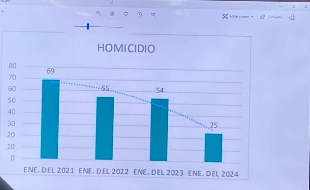 Cabe destacar que de acuerdo a las autoridades los homicidios dolosos han presentado una tendencia a la baja del 31 por ciento.