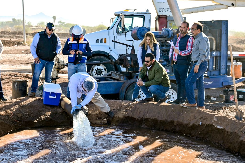 Ciudad Obregón, Sonora a 21 de Febrero de 2024.- Este miércoles personal directivo y de laboratorio del OOMAPAS de Cajeme, verificaron el aforo y calidad de agua que proporcionará el nuevo pozo “Las Misiones” a la red de agua, lo que mejorará las presiones y servicio actual y futuro al sur oriente del municipio.