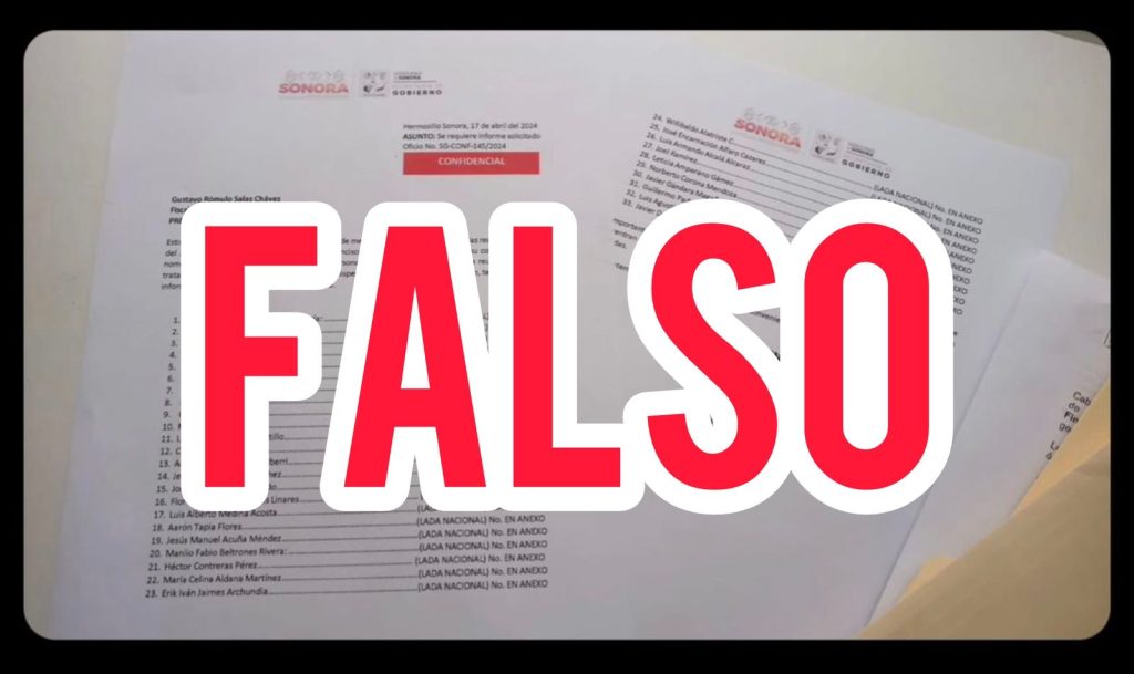 Sonora, 17 de mayo de 2024.- La Fiscalía General de Justicia del Estado de Sonora (FGJES) ha iniciado una investigación por el delito de falsificación de documentos, luego de que un supuesto oficio atribuido a un alto funcionario del Gobierno del Estado de Sonora fuera subido a redes sociales. El documento solicitaba información sobre diversas personas de interés, incluyendo candidatos a cargos de elección popular.