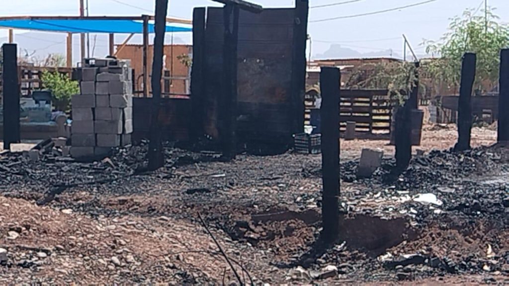 Ciudad Obregón, Sonora a 21 de Mayo de 2024.- Tres familias con residencia en la colonia “El Rodeo” perdieron todo su patrimonio luego de que el fuego consumiera totalmente sus viviendas, las cuales estaban hechas de cartón y madera.