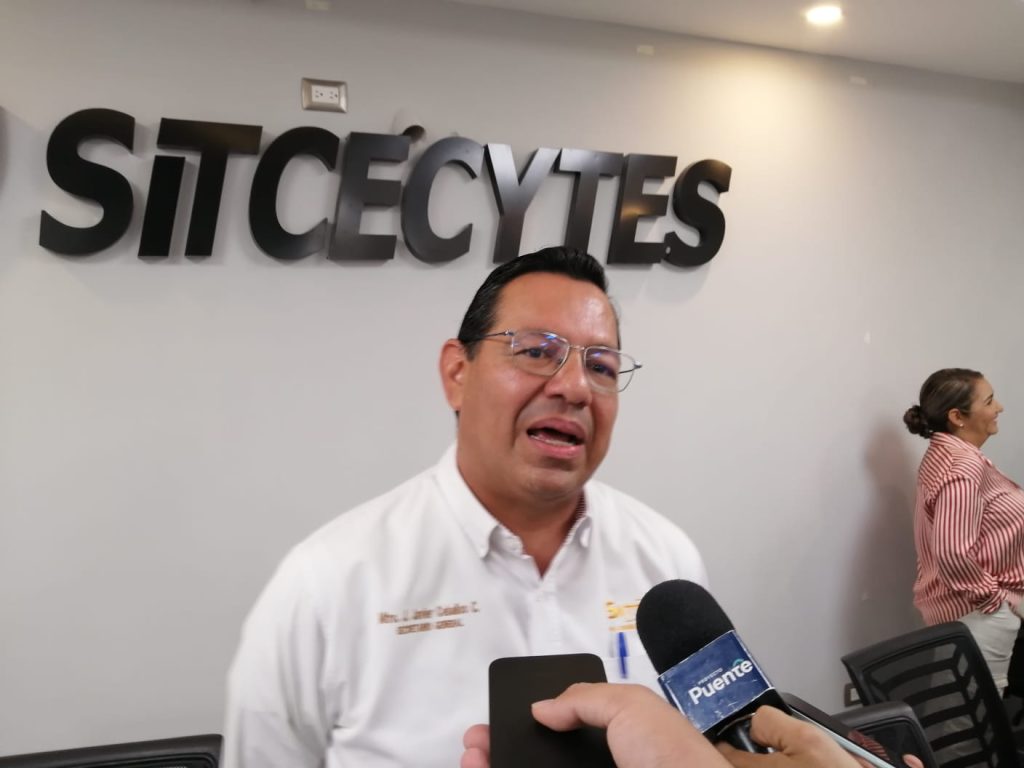 Hermosillo, Sonora a 31 de mayo del 2024. El líder de la sección 54 del Sindicato Nacional de Trabajadores de la Educación (SNTE) en Sonora, Javier Ceballos, invitó a directivos de planteles y a padres de familias a realizar graduaciones sencillas en las mismas instalaciones escolares, para evitar grandes gastos.