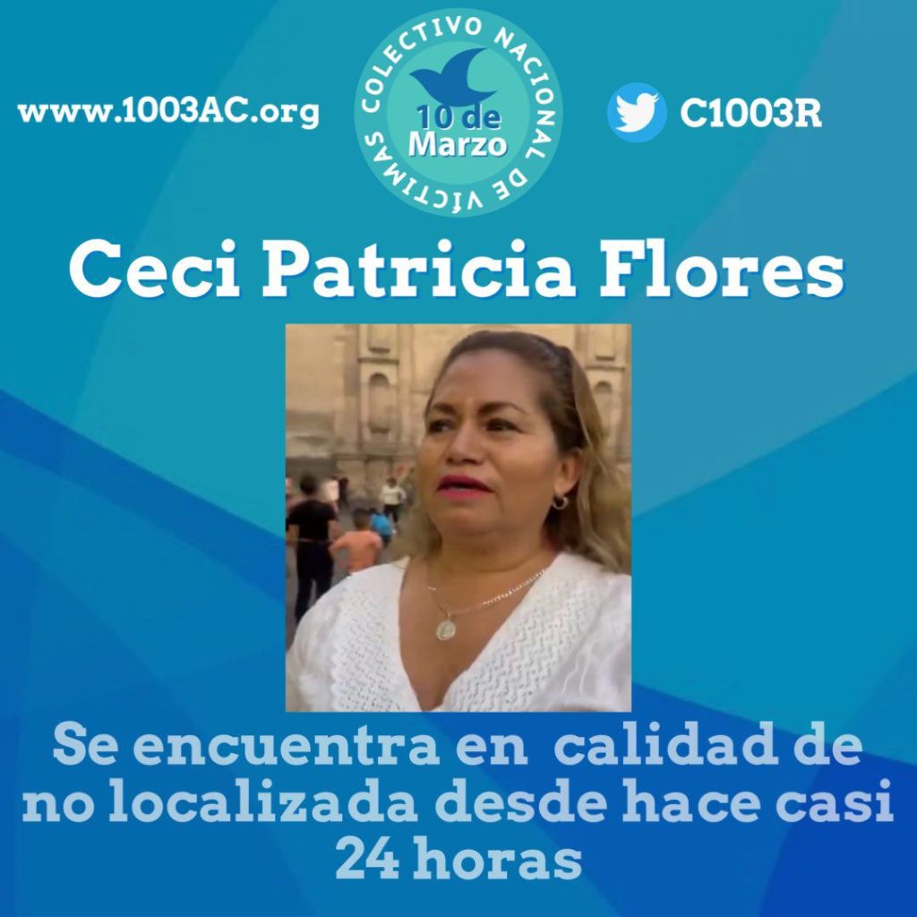 “Se informa que la noche del pasado domingo 16 de junio, fue el último contacto de familiares con Ceci Flores quien se ubicaba en el estado de Querétaro, por lo que se tuvo el reporte el día de hoy a las 11:20 horas de su desaparición”.