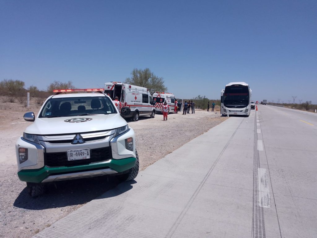 Hermosillo, 20 de Junio. – Personal de Cruz Roja, Bomberos de Hermosillo, Protección Civil Sonora, de la Caseta de Cobro, de CRUM, así como diversos cuerpos de seguridad y rescate, acudieron al auxilio de 50 pasajeros de un autobús que quedó descompuesto en el Libramiento de Hermosillo.
