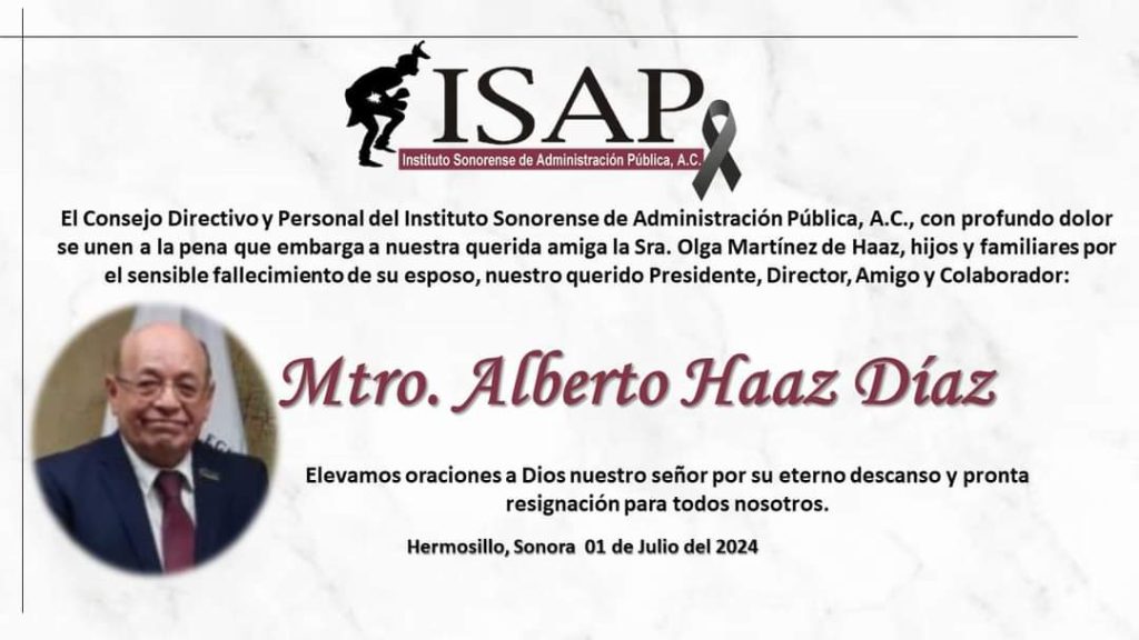 El Presidente del Consejo Directivo del Instituto Sonorense de Administración Pública (ISAP) en la entidad perdió la vida en su hogar está mañana, siendo conformada por sus familiares.