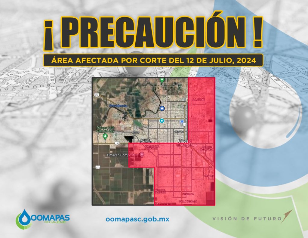 Ciudad Obregón, 8 de Julio – El Organismo Operador Municipal de Agua Potable, Alcantarillado y Saneamiento de Cajeme (OOMAPASC) ha anunciado la suspensión del servicio de agua en todo el sector oriente de Ciudad Obregón debido a trabajos de interconexión en una nueva línea principal de 30 pulgadas.