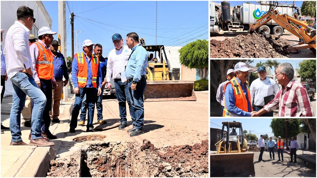 Posteriormente, el Presidente Municipal se trasladó al bulevar Ramírez, entre Coahuila y Tabasco, en la colonia Cortinas, donde verificó el avance de los trabajos de rehabilitación del drenaje sanitario. Más tarde acudió a la colonia México para supervisar las acciones de reparación de la red de alcantarillado y los trabajos de bacheo que se llevan a cabo en la calle Puerto de Mazatlán.