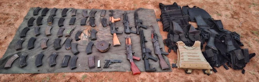 En total, se aseguraron seis fusiles de asalto, una pistola, 980 cartuchos útiles de distintos calibres, 40 cargadores y siete chalecos tácticos.