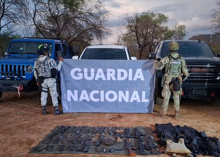 Navojoa, Sonora; 3 de julio de 2025.- Un arsenal de armas y equipo táctico, junto con tres vehículos, fue asegurado por elementos federales en el municipio de Navojoa, Sonora.