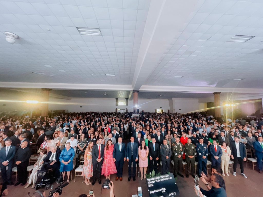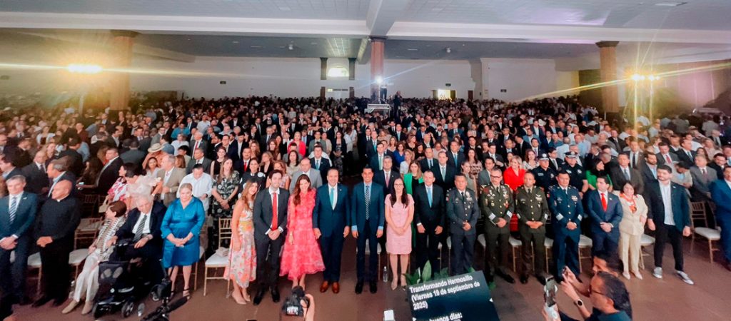Ante miles de asistentes, el alcalde subrayó que Hermosillo vive hoy el cambio como una realidad tangible. “Lo veo cuando salgo a correr en el Navarrete, lleno de familias ejercitándose en un ambiente seguro, eso me hace sentir un hermosillense”, expresó.