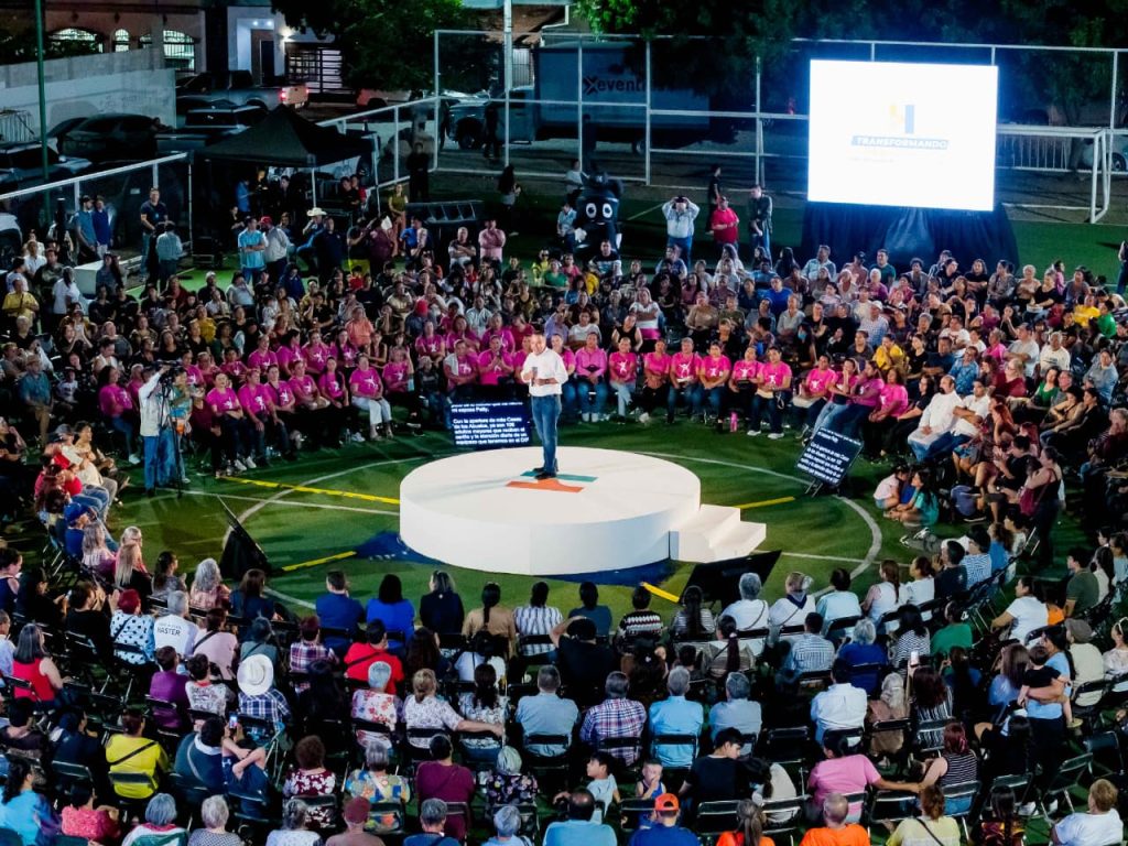 Acompañado por su esposa y presidenta de DIF Hermosillo, Patricia Ruibal Zaragoza, el alcalde encabezó una reunión en el parque Cuatro Olivos, donde compartió con residentes del norte de la ciudad los avances de su administración en seguridad, obra pública y programas de apoyo a la población vulnerable.