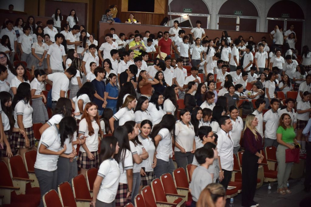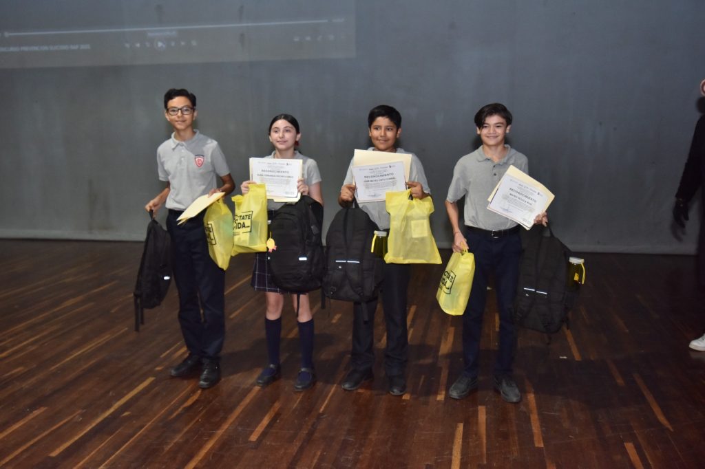También asistieron Gabriel Ramos Gallegos, encargado del Distrito 5 de la Secretaría de Salud, directores y maestros de instituciones educativas. Se reconoció al grupo del Colegio Bosco que, con su tema musical y video “Nuevo Amanecer”, ganaron el concurso para la identidad de los foros estatales en su segunda edición.