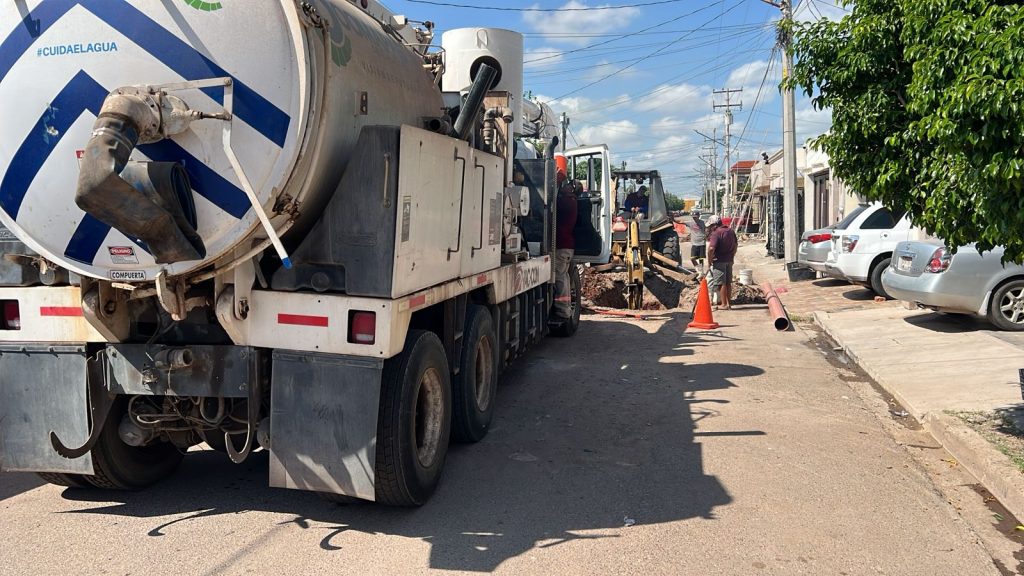 Cajeme, Sonora; 9 de octubre de 2025.- Personal del Organismo Operador Municipal de Agua Potable, Alcantarillado y Saneamiento de Cajeme (OOMAPASC) lleva a cabo labores de desazolve y reparación del drenaje sanitario en las calles Valle del Girasol y Valle Fértil, en la colonia Valle Dorado.