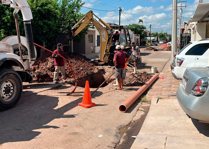 Cajeme, Sonora; 9 de octubre de 2025.- Personal del Organismo Operador Municipal de Agua Potable, Alcantarillado y Saneamiento de Cajeme (OOMAPASC) lleva a cabo labores de desazolve y reparación del drenaje sanitario en las calles Valle del Girasol y Valle Fértil, en la colonia Valle Dorado.