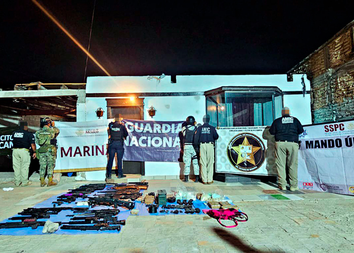 San Luis Río Colorado, Sonora; 10 de octubre de 2025.- La Fiscalía General de Justicia del Estado de Sonora (FGJES), a través de la Agencia Ministerial de Investigación Criminal (AMIC), en coordinación con la Secretaría de Marina (Semar), la Secretaría de la Defensa Nacional (Sedena), la Guardia Nacional (GN) y el Mando Único, ejecutó un cateo que derivó en el aseguramiento de armas de alto poder, vehículos con reporte de robo y narcóticos, debilitando de manera significativa una estructura delictiva que operaba en la región fronteriza.