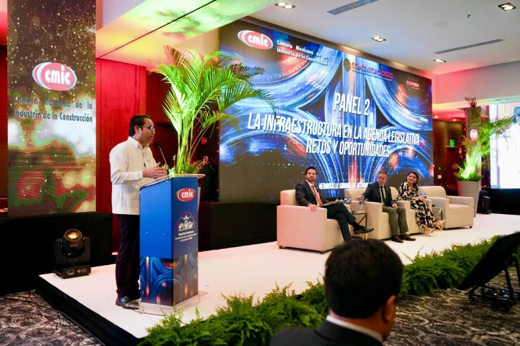 Durante su participación en el panel “La Infraestructura en la Agenda Legislativa: Retos y Oportunidades”, celebrado en la Reunión Nacional de Infraestructura, Comunicaciones y Transportes organizada por la CMIC en Hermosillo, Aguilar Castillo destacó que “la infraestructura no se mide en concreto ni en acero, sino en oportunidades, justicia social y desarrollo con bienestar”.