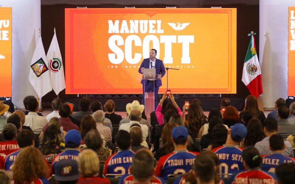 Cajeme, Sonora; 15 de octubre de 2025.- Ante cientos de cajemenses, el diputado local por el distrito de Cajeme, Manuel Scott, presentó su primer informe anual de actividades legislativas, donde resaltó su trabajo en favor de los sectores social y económicamente más desprotegidos, especialmente la niñez.