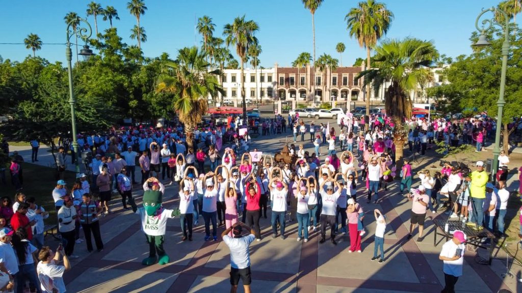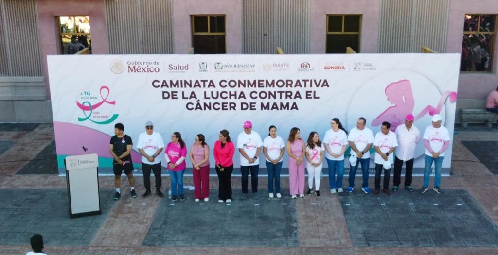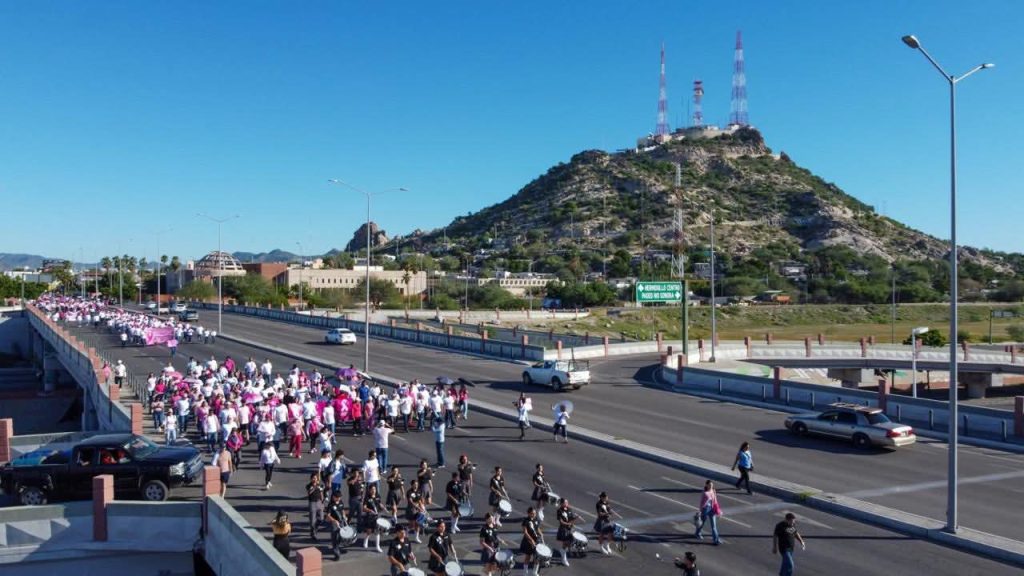 Desde la plaza Emiliana de Zubeldía en Hermosillo, cientos de asistentes se desplazaron con mensajes para la concientización del cáncer de mama y cervicouterino, que cada año arrebatan la vida de miles de mujeres por no tener un diagnóstico oportuno.