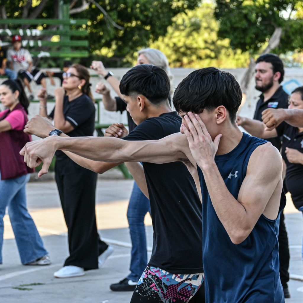 Cajeme, Sonora; 24 de octubre de 2025.– En un ambiente deportivo y familiar se llevó a cabo la clase comunitaria “Boxeando por la Paz”, evento en el que decenas de niñas, niños y jóvenes participaron en una jornada de convivencia y aprendizaje encabezada por los boxeadores profesionales Danitza “La Cobrita” Martínez y Erick “El Elegante” Díaz.
