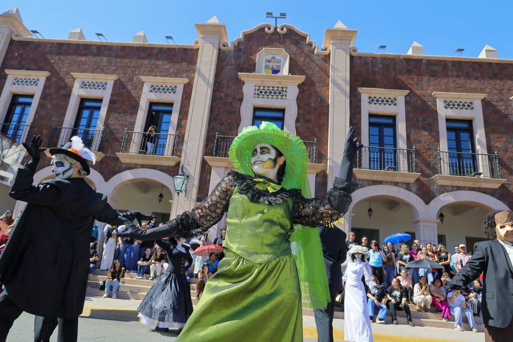 Más de 120 estudiantes del área de Bellas de la Universidad de Sonora, realizaron la tradicional procesión de catrinas y catrines por el día de muertos, en las calles aledañas al campus de Hermosillo.