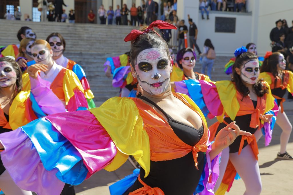 Más de 120 estudiantes del área de Bellas de la Universidad de Sonora, realizaron la tradicional procesión de catrinas y catrines por el día de muertos, en las calles aledañas al campus de Hermosillo.