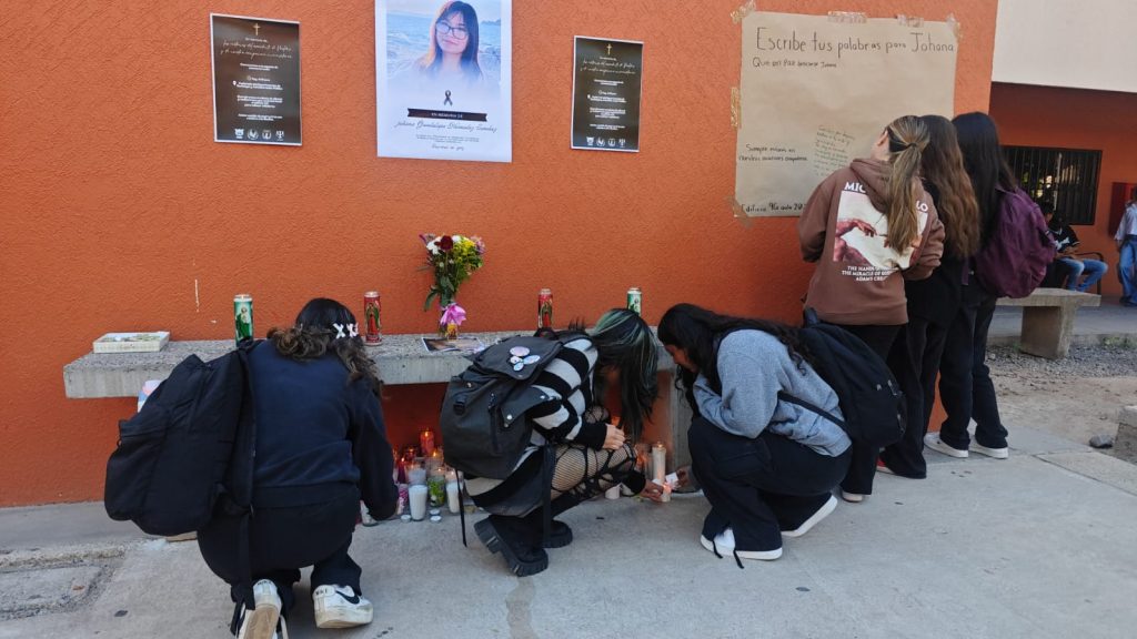 Entre flores, velas y abrazos, los estudiantes despidieron a Johana con una promesa escrita en una de las cartulinas pegadas en el muro: “Tu sonrisa no se apaga, Joha. Siempre serás parte de nosotros.”