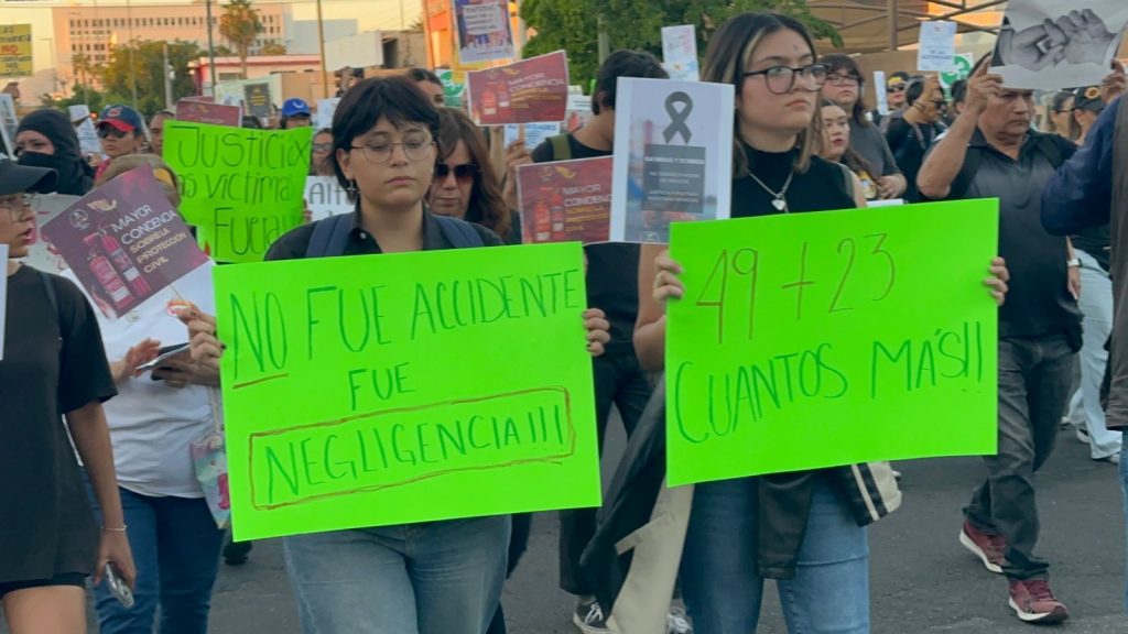 HERMOSILLO, Sonora.– Cientos de personas se reunieron la tarde de este miércoles en la Plaza Emiliana de Zubeldía para participar en una marcha en memoria de las 23 víctimas del incendio ocurrido el pasado 1 de noviembre en una tienda Waldo’s del centro de Hermosillo.