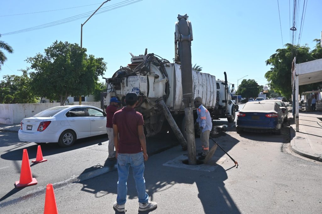 Con el objetivo de mantener en óptimas condiciones la red de drenaje y prevenir posibles obstrucciones, el Organismo Operador Municipal de Agua Potable, Alcantarillado y Saneamiento de Cajeme (OOMAPASC) realiza este martes trabajos de sondeo y desasolve de tubería sanitaria en la calle Lerdo de Tejada, entre Coahuila y Tabasco.