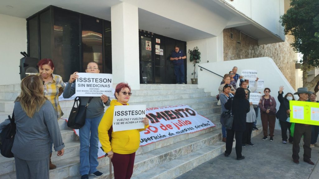 Derechohabientes y jubilados por el ISSSTESON se concentraron por un par de horas en la entrada del Congreso de Sonora, para solicitar atención de los diputados locales.