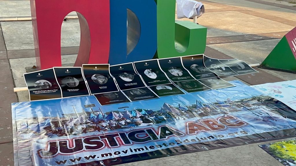 Se concentraron en la plaza Emiliana de Zubeldía donde colocaron imágenes de los fallecidos en el trágico incidente del 1 de noviembre.