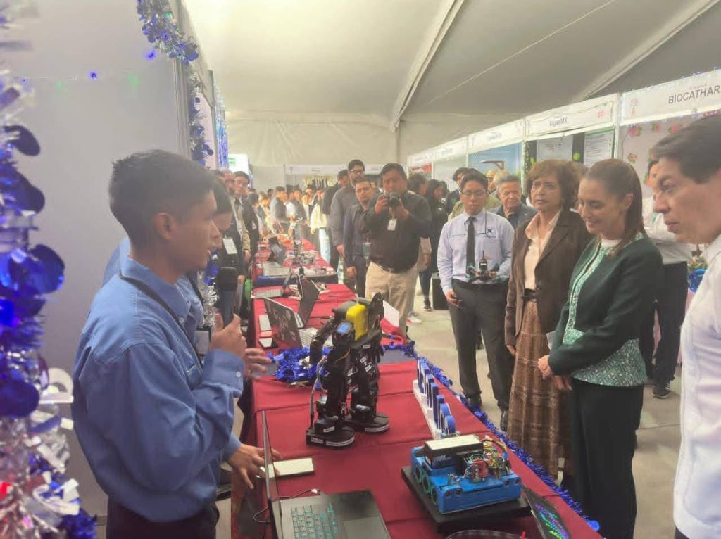 SOLIDEO —un robot humanoide desarrollado para avanzar en equilibrio, precisión y asistencia técnica— fue mostrado directamente a la mandataria federal durante su recorrido por los proyectos finalistas del certamen, donde la presidenta anunció además la creación del Fondo InnovaTecNM, un programa de acompañamiento y financiamiento para impulsar el registro de patentes y el desarrollo tecnológico estudiantil.