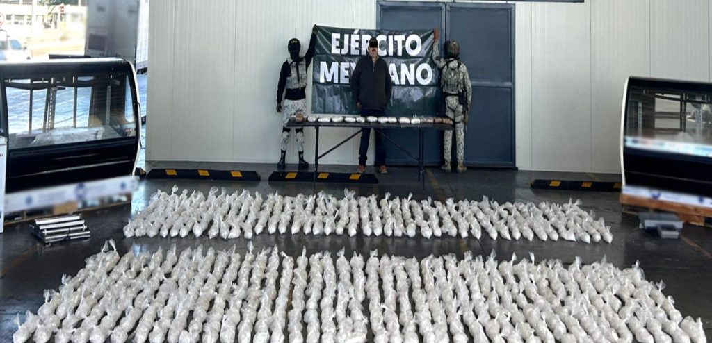 Trasladaba 294 kilos de metanfetamina, 12 kilos de fentanilo, 2.2 kilos de goma de opio y 13.4 kilos de precursores químicos.