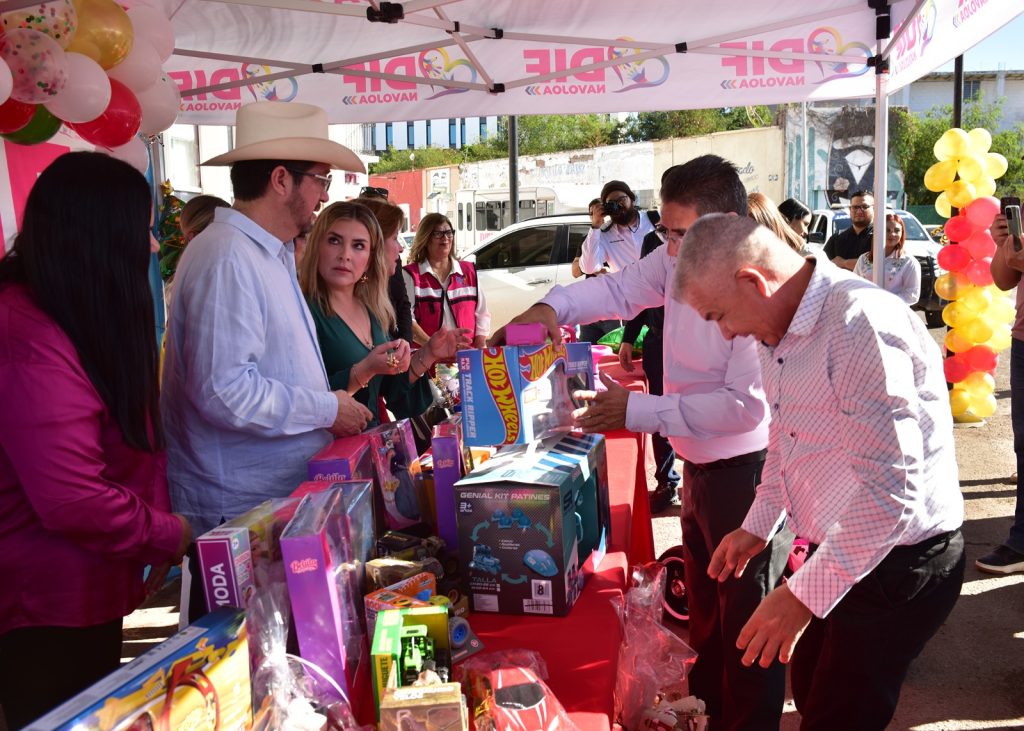 “Nosotros tenemos en nuestras manos ese momento de perpetuar que la Navidad de los niños siga siendo mágica”, expresó ante la directora de DIF, Eliana Castro Carlón, la presidenta del Voluntariado, Antonieta Cevallos, integrantes de la asociación George Papanicolaou, regidores y funcionarios que hicieron las primeras donaciones de juguetes.