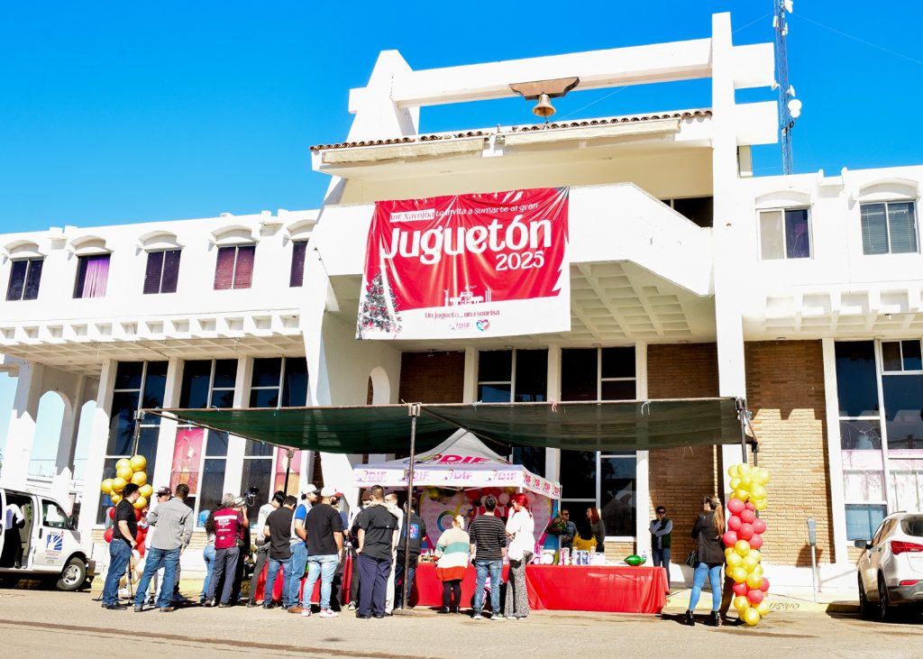 Navojoa, Sonora, 8 de diciembre 2025.- A la generosidad, nobleza y solidaridad para hacer felices a niños que podrían no recibir un regalo en Navidad convocaron a los navojoenses el alcalde Jorge Alberto Elías Retes y la presidenta del Sistema DIF, Luz Argel Gaxiola de Elías, en el arranque este lunes del Juguetón 2025.