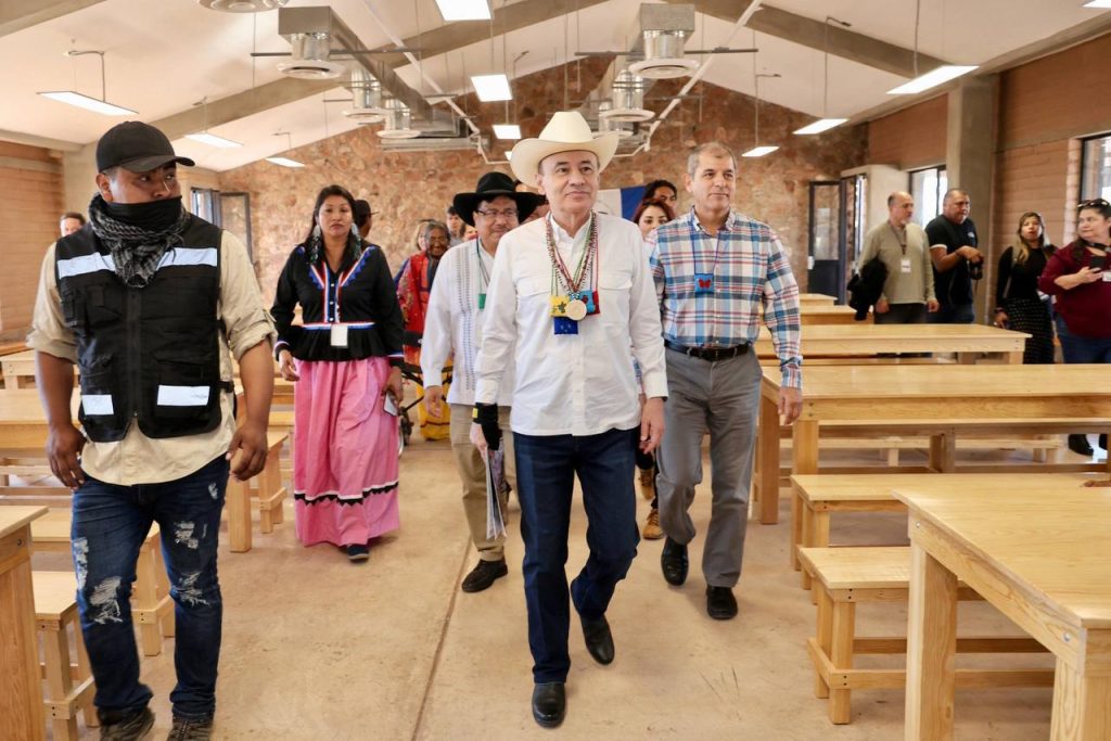Durante el evento, el gobernador Durazo, junto a autoridades tradicionales del Pueblo Comca’ac, realizó un recorrido por las nuevas instalaciones, destacando la importancia de atender a la niñez y juventud de la comunidad.