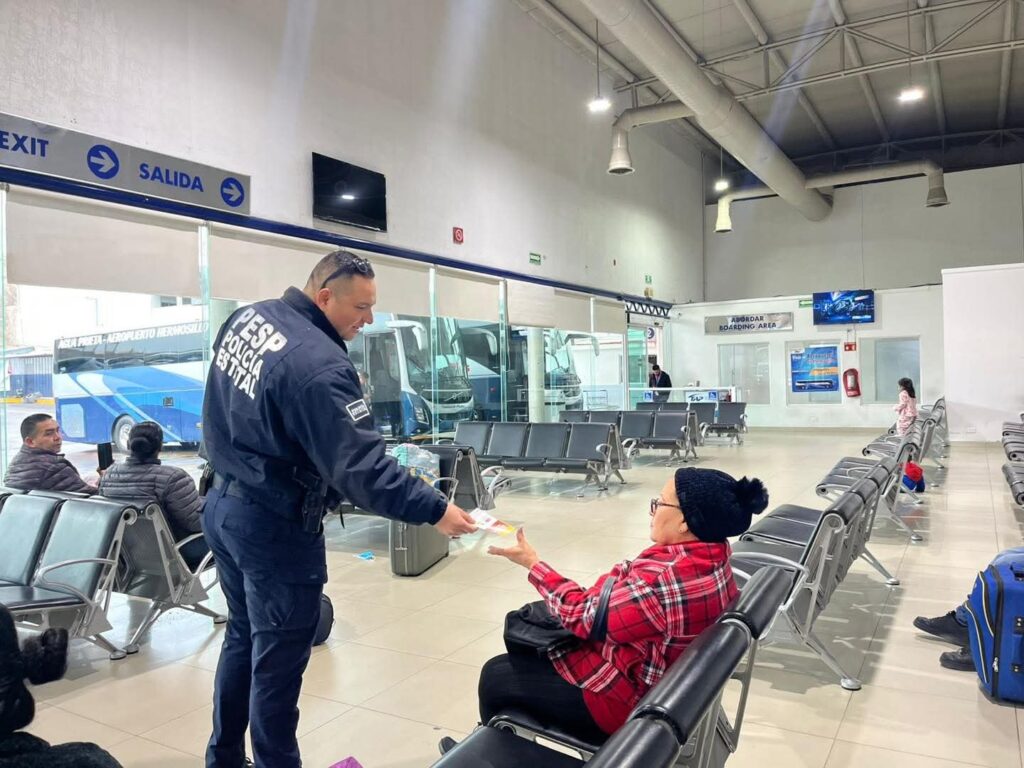 Policías orientan a viajeros en la Central de Autobuses de Hermosillo
