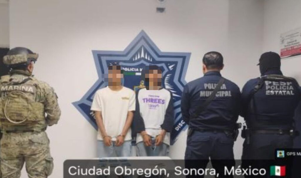 Cajeme, Sonora.– Elementos de la Secretaría de Seguridad Pública Municipal (SSPM), en coordinación con la Policía Estatal y personal de la Secretaría de Marina, detuvieron a tres personas por su presunta responsabilidad en delitos contra la salud y portación de arma prohibida, durante operativos de vigilancia realizados en distintos puntos del municipio.