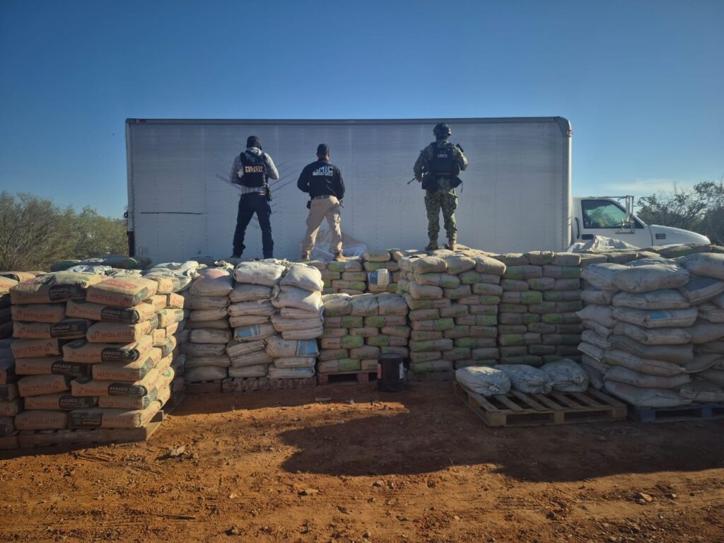 Entre lo asegurado se encuentran seis vehículos, un semirremolque, mil 19 sacos de cemento, 26 contenedores y 24 mil 572 cajetillas de cigarros.