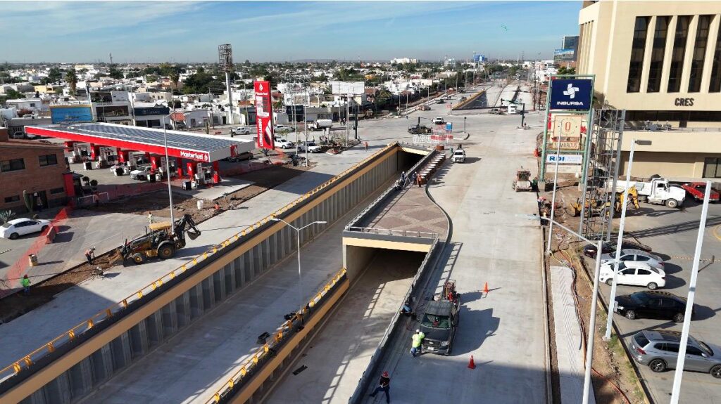 El paso a desnivel permitirá que los movimientos vehiculares de oriente a poniente y de poniente a oriente sobre el bulevar Colosio sean continuos y libres, mientras que el tránsito sobre el bulevar Solidaridad contará con carriles laterales optimizados para giros y circulación.