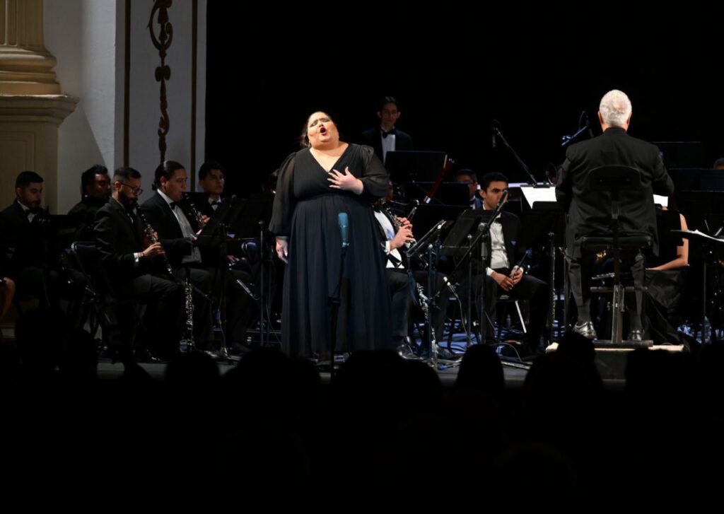 En el segundo día de actividades del FAOT 2026, en las noches de gala se presentó la soprano Marcela Robles, acompañada por la Banda Sinfónica del Estado de Sonora, bajo la dirección de Enrique Patrón de Rueda.