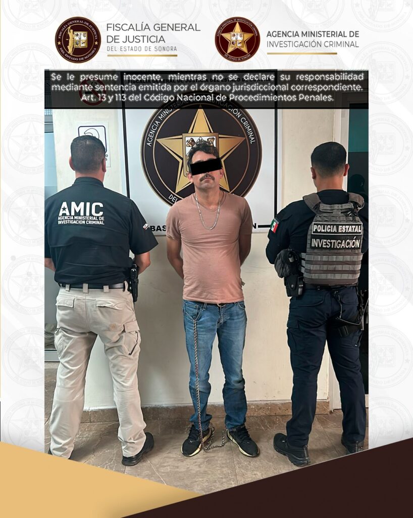 Cajeme, Sonora, 2 de febrero de 2026.- La Fiscalía General de Justicia del Estado de Sonora (FGJES), informa que como resultado de labores de investigación, inteligencia y seguimiento delictivo, se logró la detención de César Daniel “N”, alias “El Peye”, considerado objetivo prioritario, quien cuenta con 10 órdenes de aprehensión vigentes por delitos de alto impacto.