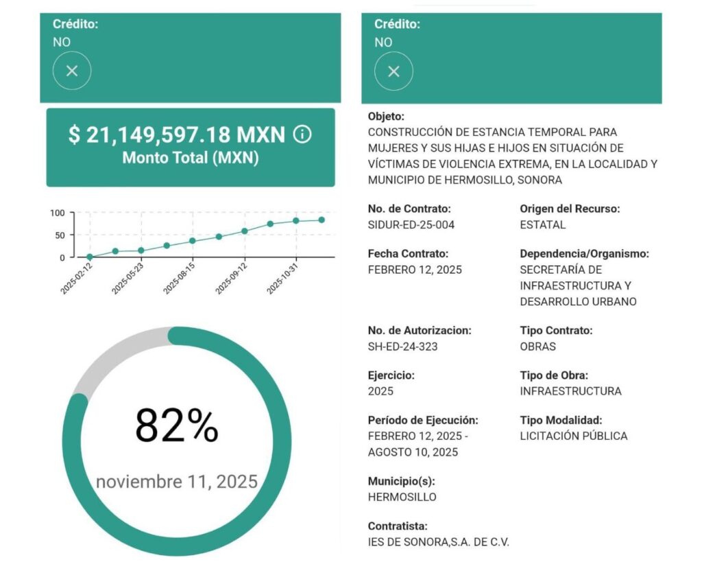 Este mes de febrero se inaugurará en Hermosillo, Sonora un albergue para mujeres y víctimas de violencia extrema, mismo que refleja un avance superior al 82 por ciento.