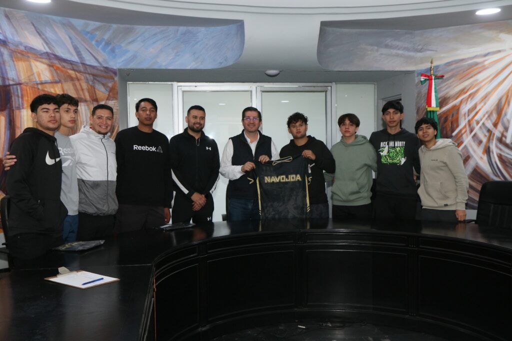 Navojoa, Sonora, 3 de febrero 2026.- El alcalde Jorge Alberto Elías Retes entregó, este martes, uniformes a deportistas navojoenses que participan a partir de hoy en los juegos del Torneo Estatal de Voleibol en Hermosillo, exhortándolos a dar el mejor de los esfuerzos en todo lo que emprendan.