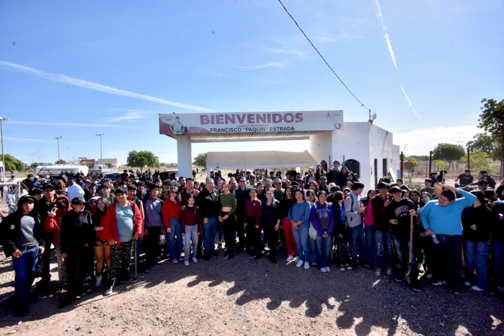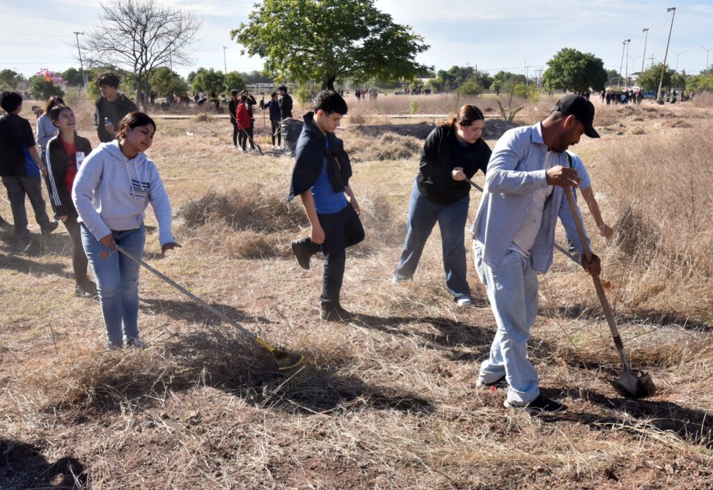 Navojoa, Sonora, 20 de febrero 2026.- Una mega jornada de limpieza a la Unidad Deportiva “Francisco ‘Paquín’ Estrada” encabezó, este viernes, el alcalde Jorge Alberto Elías Retes junto a alrededor de mil estudiantes del CBTIS 207 y Escuela Normal Superior, en un esfuerzo coordinado para la rehabilitación de dicho complejo deportivo ubicado al oriente de la ciudad.