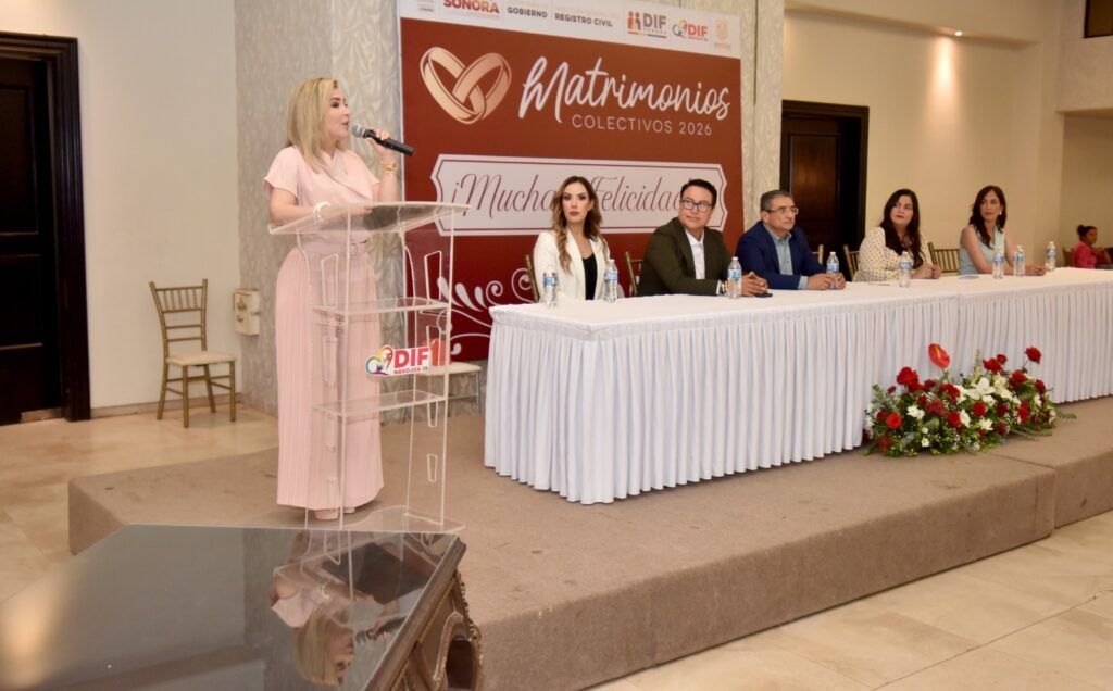 Durante el evento, la presidenta del DIF Navojoa, Luz Argel Gaxiola de Elías, participó como testigo de honor y felicitó a las parejas por tomar la decisión de formalizar su relación, destacando que el matrimonio civil brinda certeza jurídica y fortalece los valores de respeto, amor y responsabilidad en la vida en pareja.