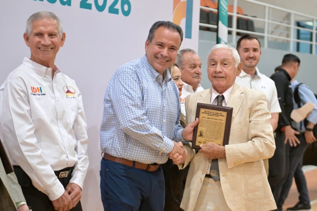 Lo acompañaron en la que fue la tercera ceremonia del programa Bienvenido a Casa Rafael Cruz Flores y Rodrigo Contreras, director general y director deportivo del Instituto del Deporte de Hermosillo (IDH), respectivamente; René Nájera, presidente del Consejo Directivo del Salón de la Fama; Alejandro Flores, director del comité del Salón de la Fama del Deportista Hermosillense y la regidora Dulce Robles.