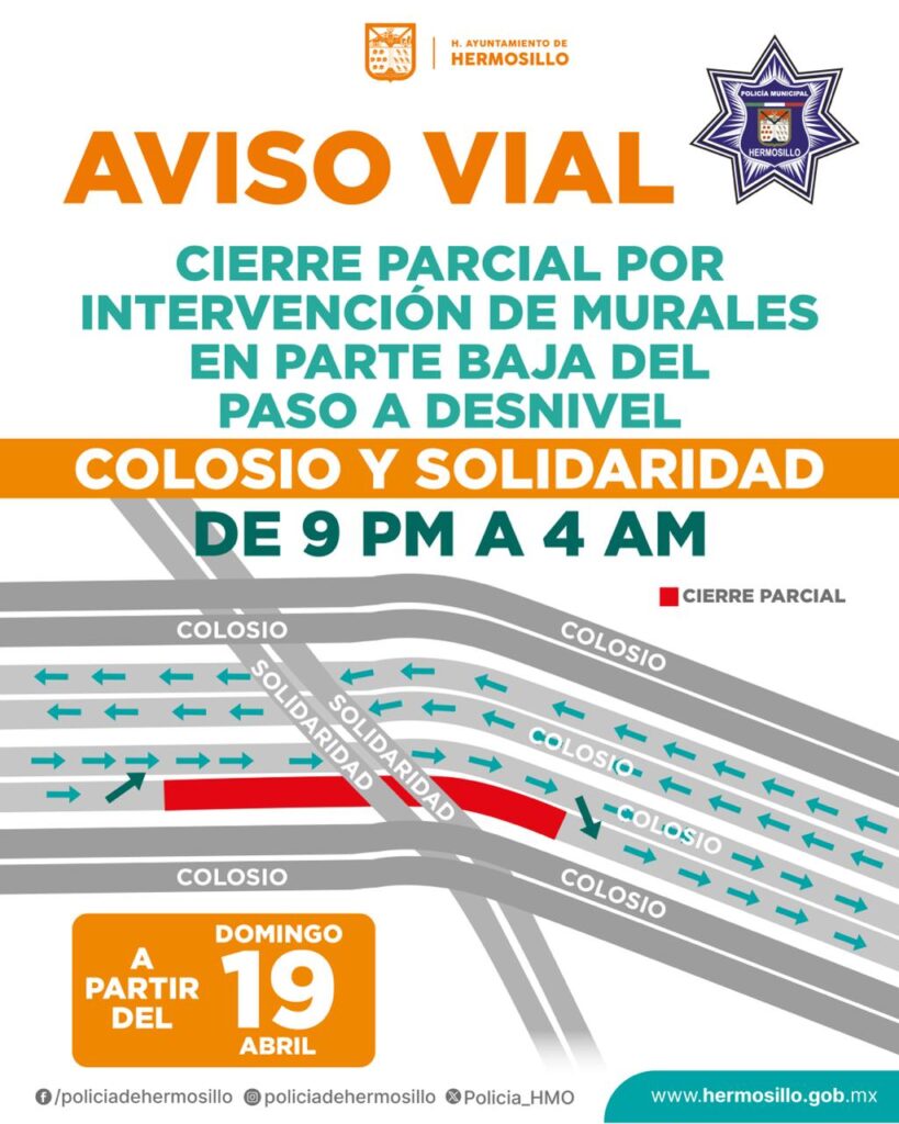 A partir de este domingo 19 de abril iniciarán los trabajos de intervención artística en el paso a desnivel de Colosio y Solidaridad, como parte de un proyecto impulsado por el Ayuntamiento de Hermosillo para mejorar la imagen urbana.