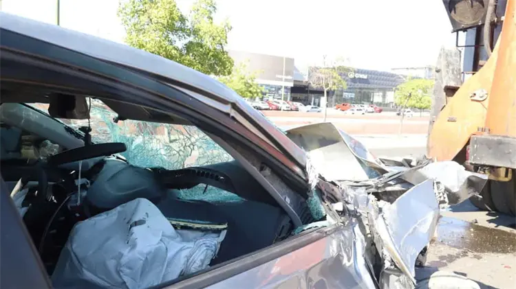 Un aparatoso accidente se registró la tarde de este jueves en el sur de Hermosillo, donde un automóvil terminó impactándose contra maquinaria pesada que realizaba trabajos en el área del Sam’s Club afectado por un incendio semanas atrás.