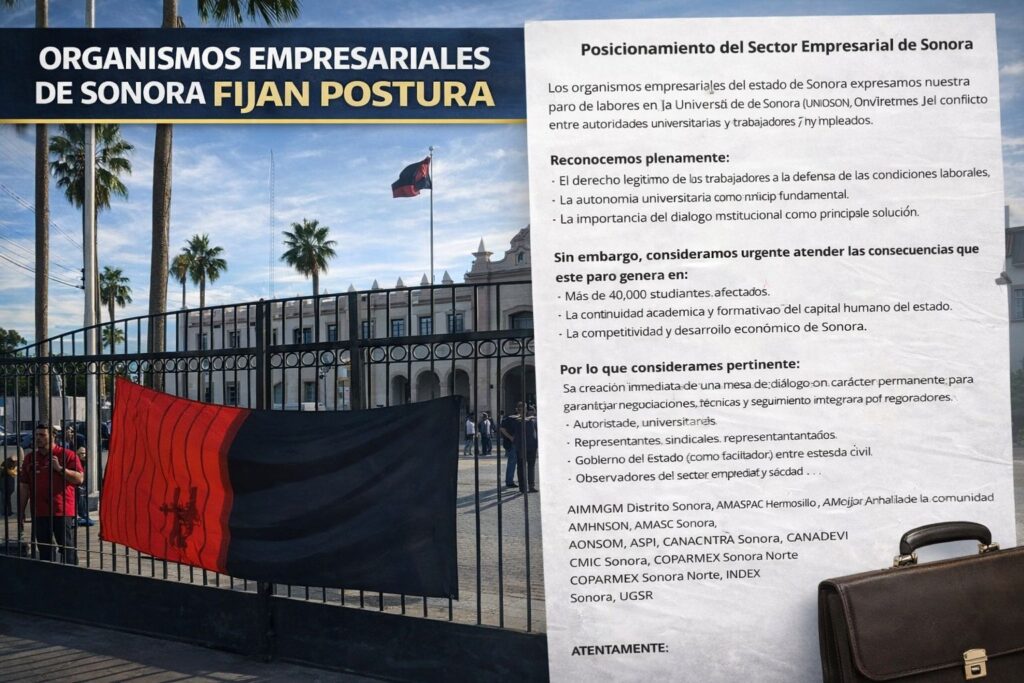 Hermosillo, Sonora; 20 de abril de 2026.– Tras el rechazo del Sindicato de Trabajadores y Empleados de la Universidad de Sonora (STEUS) a la última propuesta de la Unison y la decisión de mantener la huelga, el sector empresarial del estado alzó la voz y pidió una salida inmediata al conflicto.