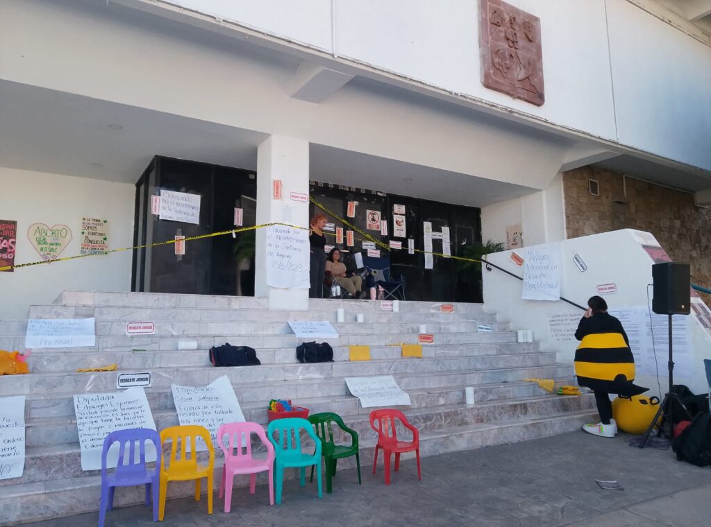 Lizeth Villalobos, presidenta de la fundación Conservando los Valores Familiares, dijo que son más de 24 horas las que tiene tomado el Congreso de Sonora, sin tener alguna negociación o diálogo con los diputados locales, tampoco algún acercamiento que promueva el diálogo con personal legislativo.